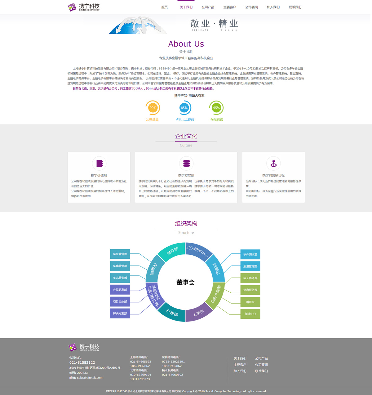 公司在多年的金融領(lǐng)域服務(wù)過程中,形成了“技術(shù)創(chuàng)新為先、服務(wù)為本”的經(jīng)營理念。公司在證券、基金、 銀行、保險等行業(yè)擁有完整的金融企業(yè)綜合管理系統(tǒng)、金融投資研究管理系統(tǒng)、客戶管理系統(tǒng)、基金直銷、金融電子商務(wù)平臺、金融電子客服平臺等解決方案與典型案例。 公司堅持以信息平臺+個性化定制為金融機構(gòu)提供符合自身發(fā)展需要的業(yè)務(wù)管理系統(tǒng),獨特的服務(wù)方式以及公司定位也使公司在快速發(fā)展的過程中得到行業(yè)客戶的高度認(rèn)可及良好的市場口碑。公司豐富項目服務(wù)管理經(jīng)驗及金融業(yè)務(wù)知識的鉆研與積累也為提高客戶服務(wù)質(zhì)量和公司發(fā)展提供了有力保障