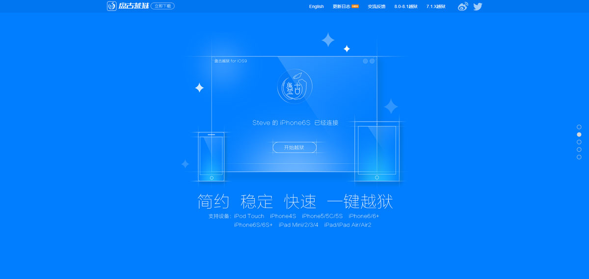 采用一鍵式越獄,具有中英文界面,同時針對中文進行主頁面優(yōu)化,更加貼合國內(nèi)用戶的需求和使用習慣,一間高科技公司