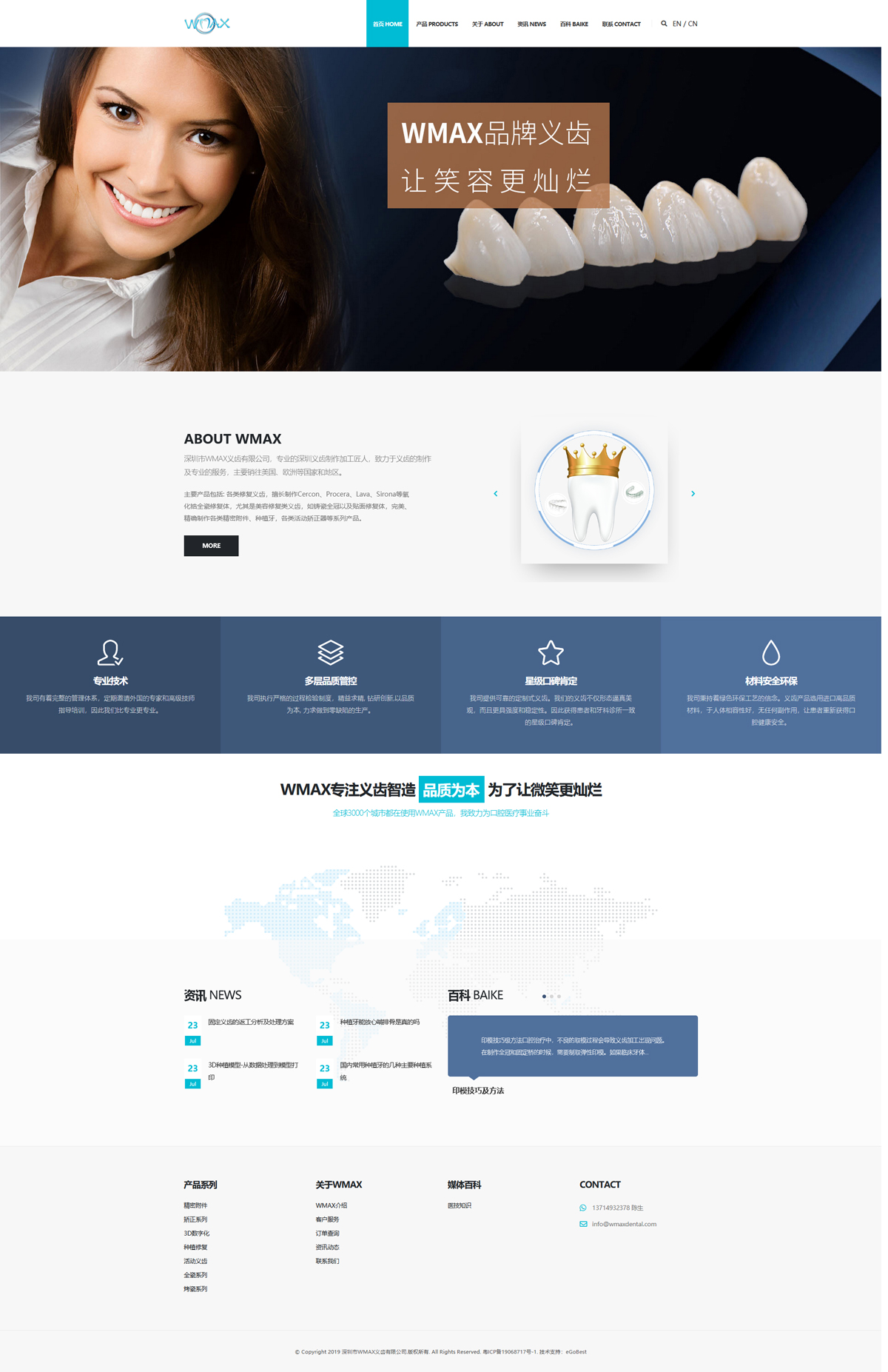 一家主營義齒定制的企業(yè),網(wǎng)站建設(shè)時(shí)需要突出產(chǎn)品的特殊性和公司的專業(yè)能力,從客戶需求出發(fā),針對專業(yè)牙科機(jī)構(gòu)的關(guān)注點(diǎn),充分展示品牌的優(yōu)勢,增加客戶對公司實(shí)力及服務(wù)的信任度。