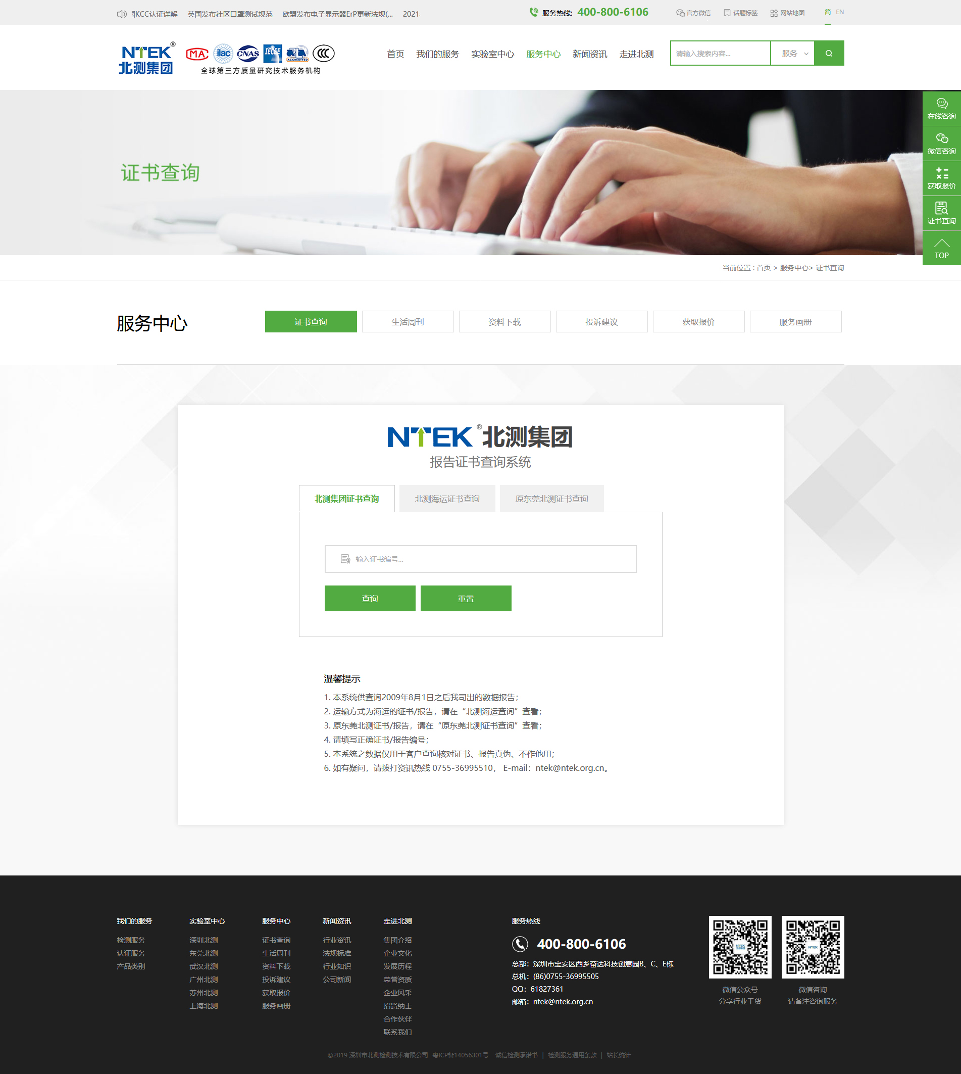 作為一家專業(yè)檢測機構(gòu),網(wǎng)站建設(shè)定制設(shè)計時需要從服務(wù)詳情,實驗室設(shè)備等多維度展示公司環(huán)境以及技術(shù)優(yōu)勢,提升客戶對企業(yè)的實力的認(rèn)可,增加證書查詢功能,增加網(wǎng)站實用性。
