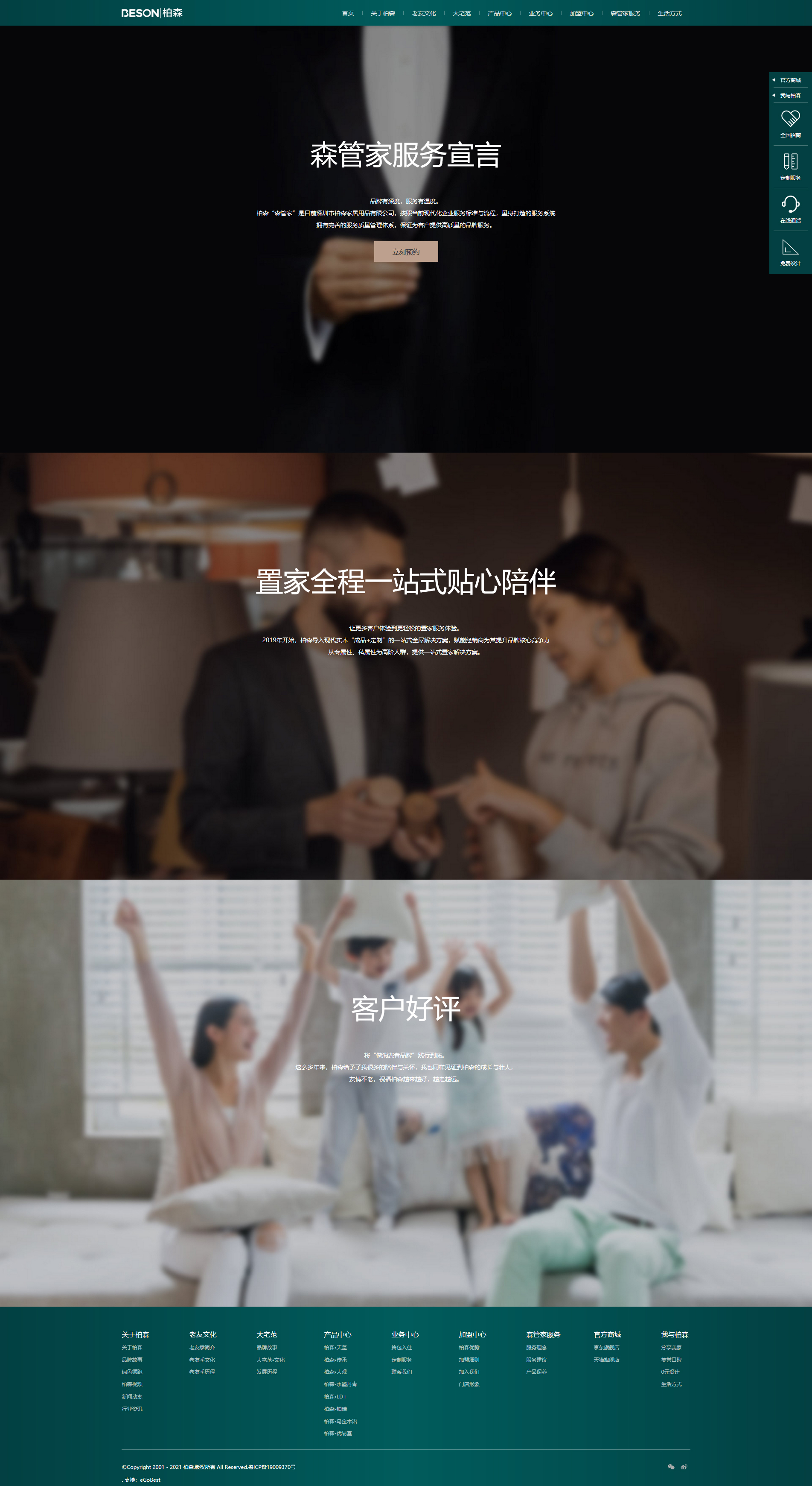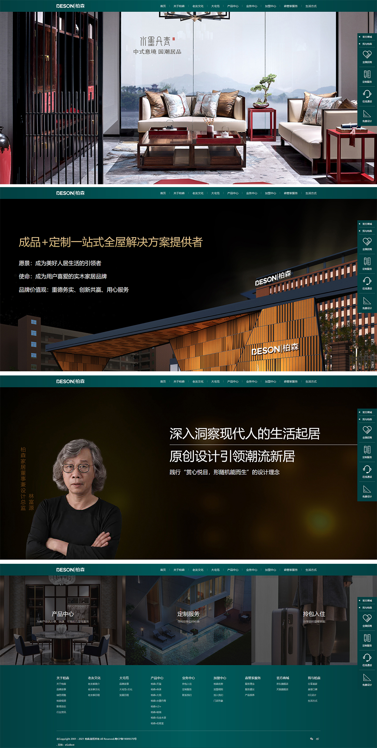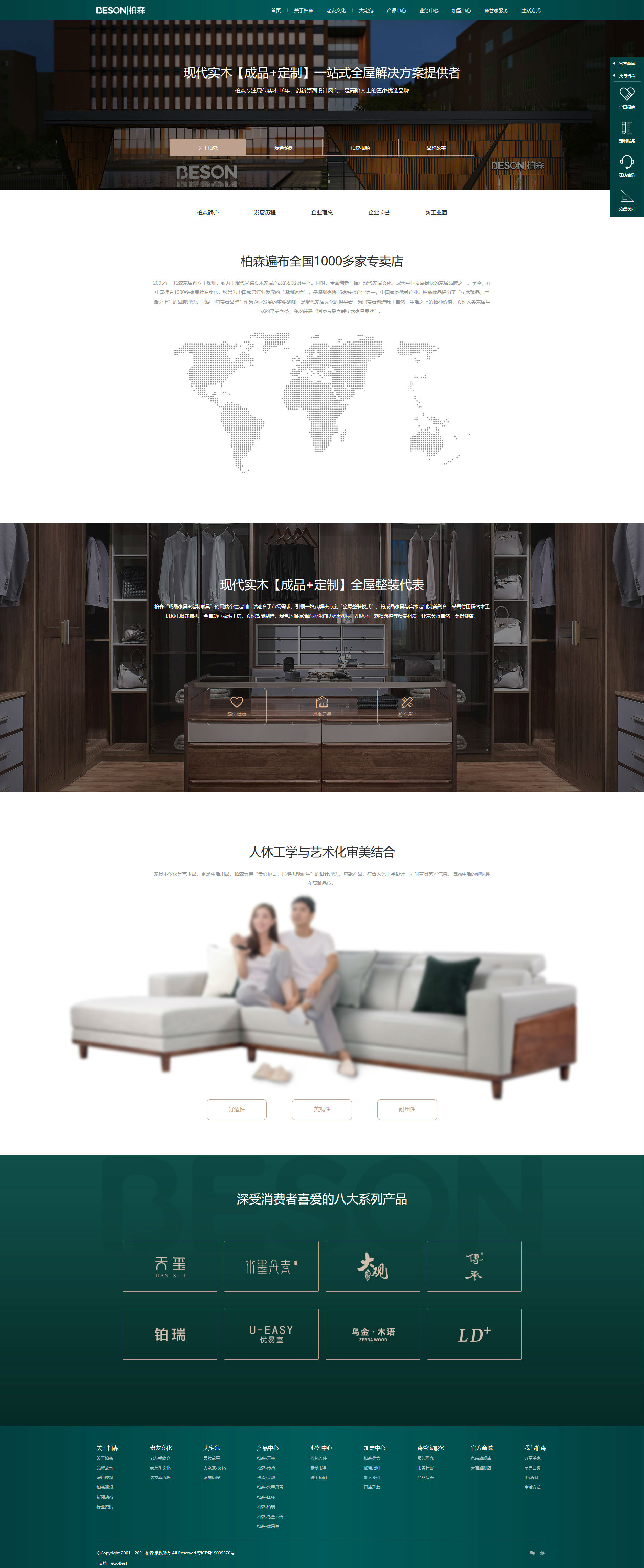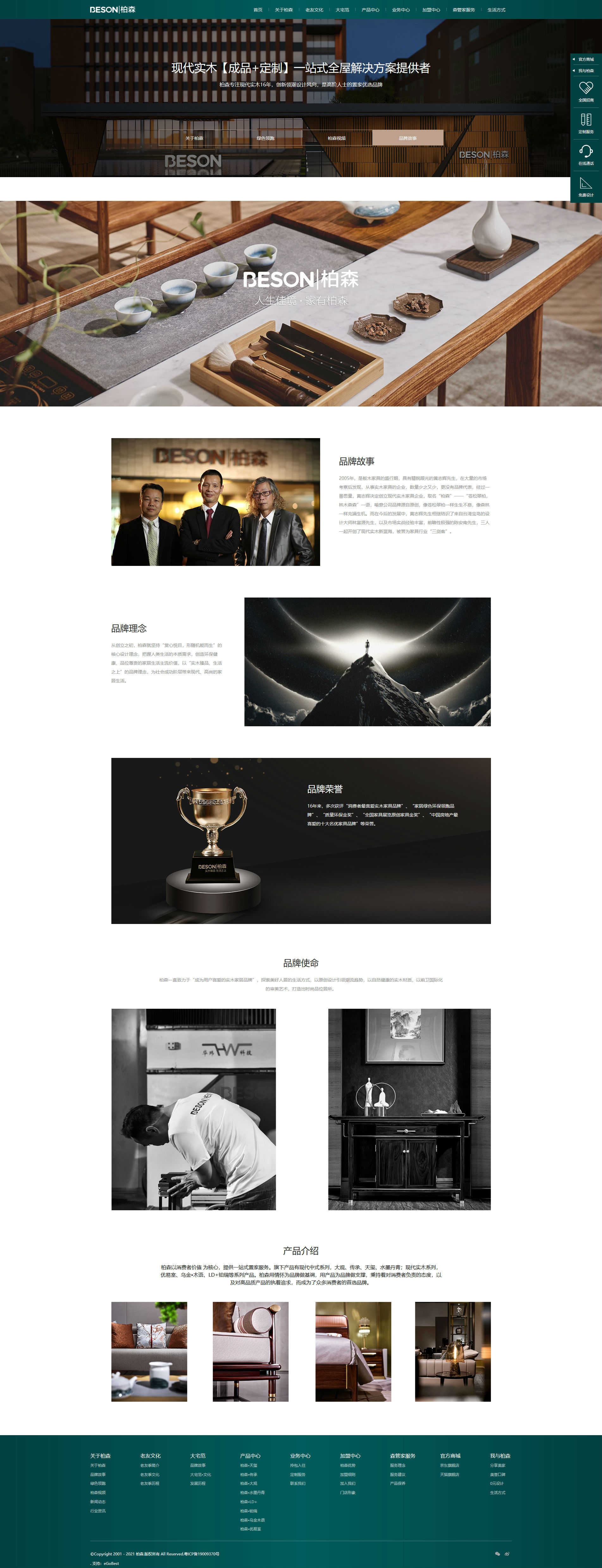 深圳市柏森家居用品有限公司,高端實木家具生產(chǎn)廠家,家居定制品牌引領者,他們公司2021新版營銷型網(wǎng)站建設從兩大板塊除非,品牌定位+企業(yè)理念+家居文化+用戶體驗等多維度結(jié)合,整體網(wǎng)頁設計元素非常爆滿而富有內(nèi)涵。