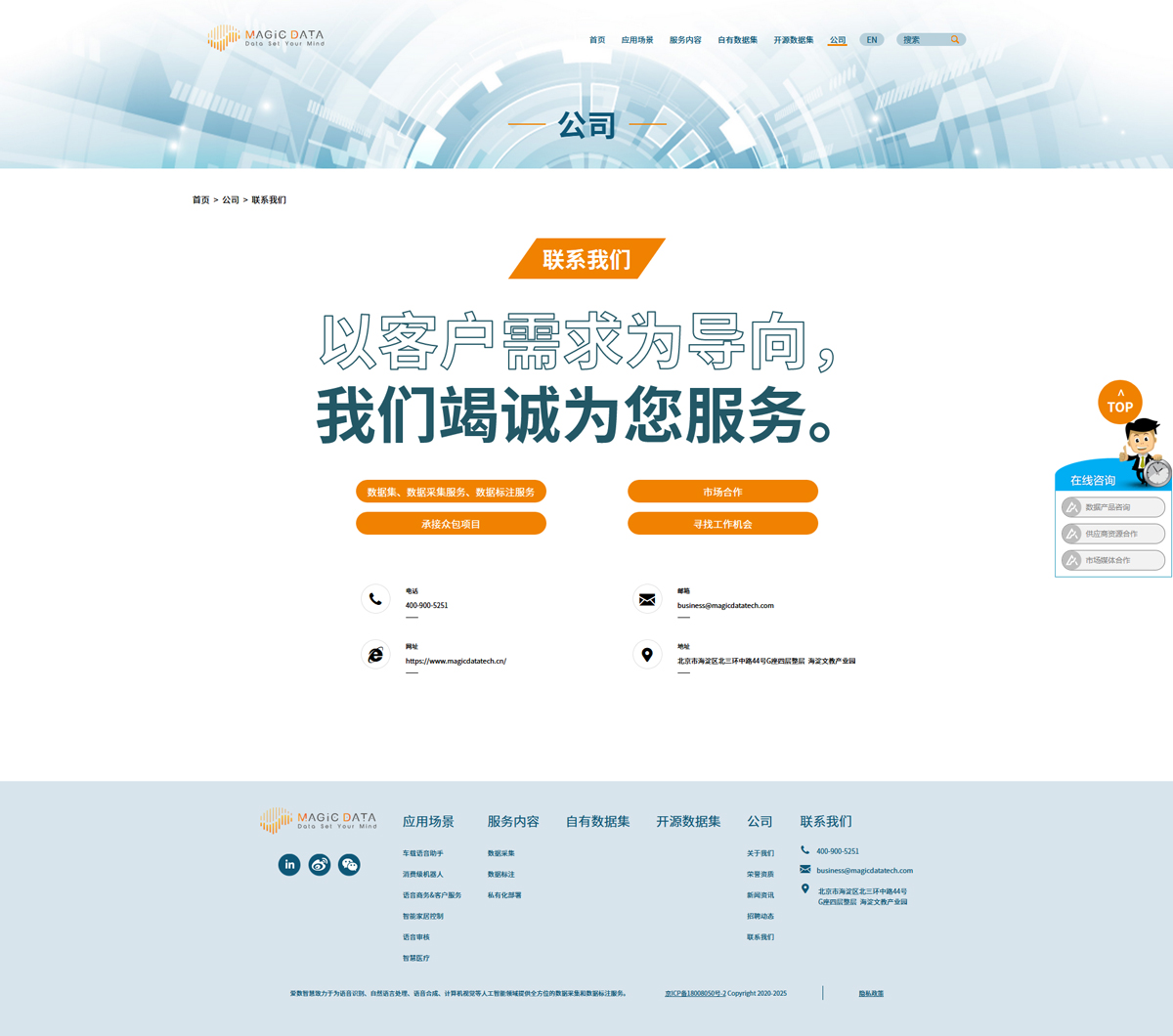 作為一家專提供數(shù)據(jù)服務的企業(yè),官網(wǎng)定制過程中要突出公司服務能力的專業(yè)性,網(wǎng)站設計使用科技元素,并充分展示應用場景,是網(wǎng)站成為一個接地氣的營銷媒介。