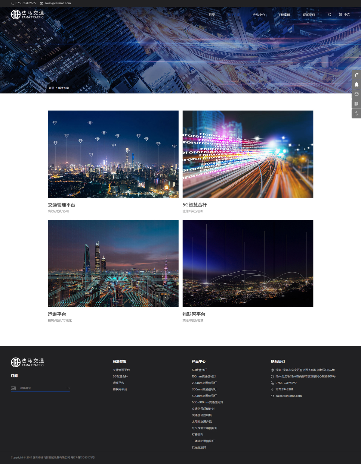 作為一家品牌智能交通設(shè)備生產(chǎn)企業(yè),網(wǎng)站建設(shè)時(shí)將產(chǎn)品與解決方案結(jié)合展示,讓客戶對(duì)公司技術(shù)優(yōu)勢(shì)有更深刻的認(rèn)知,網(wǎng)站設(shè)計(jì)充滿科技感,突出企業(yè)高新技術(shù)優(yōu)勢(shì)。