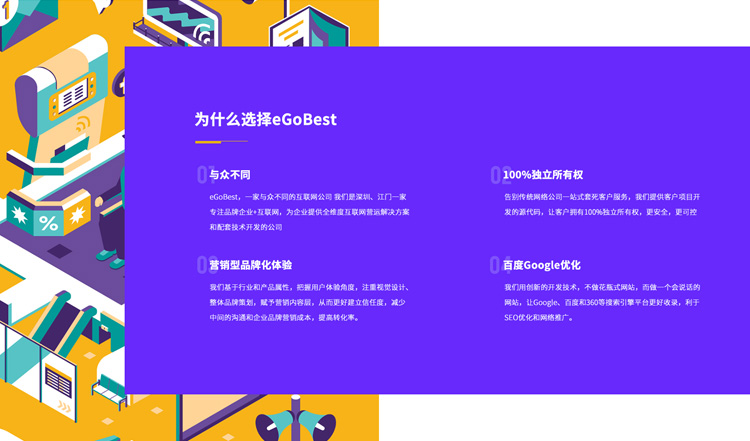 總而言之,我們eGoBest認(rèn)為,做一個好的品牌網(wǎng)站,企業(yè)必須要考慮多方面的因素,做得好可以幫助企業(yè)宣傳及營造品牌氣場,從而提高業(yè)務(wù)能力,贏得客戶,促進(jìn)企業(yè)發(fā)展;反之,如果做得不好,會影響企業(yè)形象,甚至人才招聘都會受到影響。因此,企業(yè)必須重視品牌網(wǎng)站建設(shè)公司的選擇,才能打造一個優(yōu)秀的品牌網(wǎng)站。