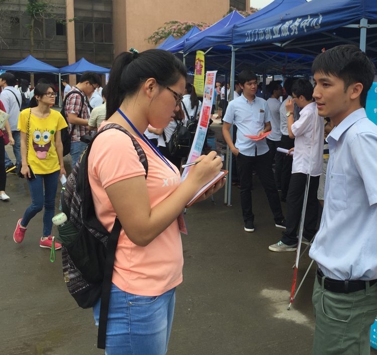 前來招聘會的學(xué)生人挺多的