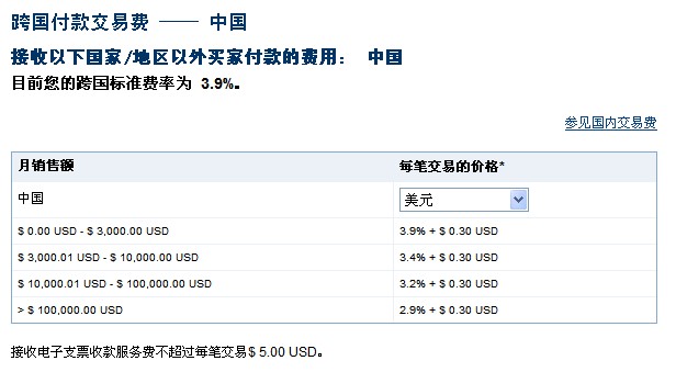 針對不同商家賬戶,PayPal將設(shè)置不同的收費標準(根據(jù)交易額) PayPal的標準收費并沒有上漲,