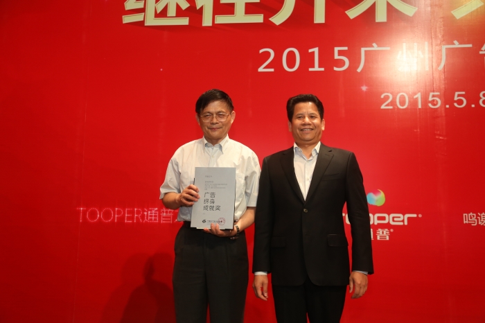 廣告終身成就獎由廣州市廣告行業(yè)協(xié)會秘書長金培武先生和廣東省廣告股份有限公司名譽(yù)董事長戴書華先生獲得。